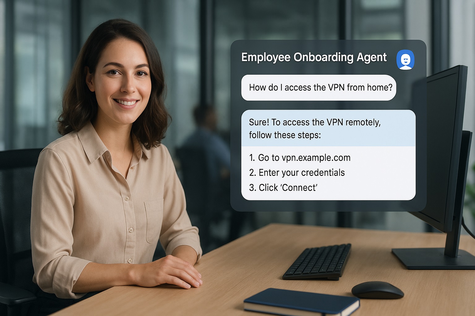 → Learn moreHelp new hires get up to speed faster with a secure, AI-powered onboarding agent that answers questions, shares resources, and reduces HR workload - right from day one.